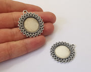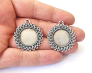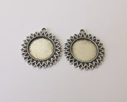 2 Leaves Frame Pendant Blank Antique Silver Plated Pendant (35x32mm) (20mm Blank Size) G24880