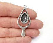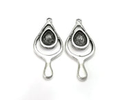 Drop Teardrop Silver Charm Blank Cabochon Base Antique Silver Plated Charms