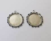 2 Round frame pendant base blank Antique silver plated pendant (35x32mm) (25mm Blank Size) G25052
