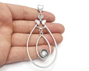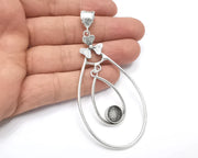 Flower pendant dangle base setting bezel blank Antique silver plated brass pendant (92x44 mm)(10 mm blank) G26361