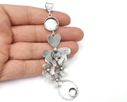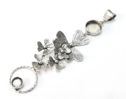 Flowers Pendant Base Setting Bezel Blank Antique Silver Plated Brass Pendant (116mm)(14 and 8 mm blanks) G26432