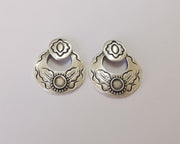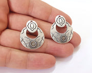 2 Silver flower leaf bezel charm blank base Antique silver plated 30x25mm (Blank Size 5mm) G28038