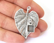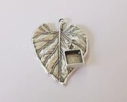 Leaf charm with Square dangle cup bezel blank Antique silver plated brass charm (45x33mm) G26100