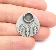 Mountain Pine Tree Charms Blank Resin Bezel Mosaic Mountings Cabochon Setting Antique Silver Plated Brass (27x24mm)(8mm Blank) G26464