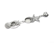 Starfish Scallop Sea Shell Dangle Pendant Base Setting Bezel Blank Antique Silver Plated Brass Pendant (104x29mm)(14 - 8mm blanks) G27157