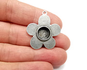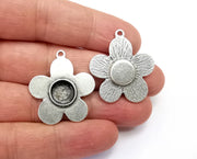 Flower Charms Blank Bezel Resin Bezel Mosaic Mountings Antique Silver Plated