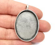 Oval Pendant Blanks, Resin Bezel Bases, Mosaic Mountings, Dry flower Frame, Polymer Clay base, Antique Silver Plated( 40x30 mm) G28093