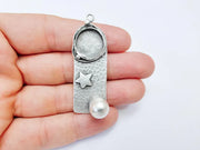 Star and Ball Pendant Bezel, Cabochon Blank, Locket Pendant Base, inlay Mounting, Resin Necklace, Antique Silver Plated Brass 15mm G36733