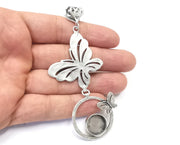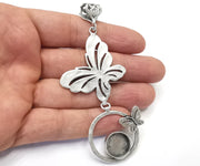 Butterfly pendant base setting bezel blank Antique silver plated brass pendant (100mm) (14mm blank) G26368