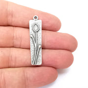 Silver Flower Charms, Blank Charms, Rustic Charms, Earring Charms, Silver Pendant, Necklace Parts Antique Silver Plated 42x10mm 6x4mm G36357