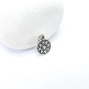 4 Silver Round Flower Charm, Earring Charms, Dangle Bracelet Charms, Necklace Parts, Antique Silver Plated 13x10mm G36617