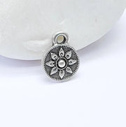 Add a touch of floral elegance to your jewelry creations with this antique silver plated flower charm. The detailed sunflower design on a round pendant makes it perfect for delicate necklaces, bracelets, or earrings. Lightweight and versatile, this charm is ideal for boho, rustic, or nature-inspired jewelry projects.