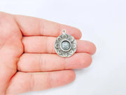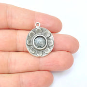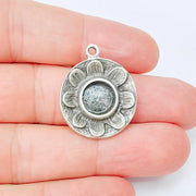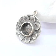 Flower Pendant Blank, Cabochon Charm Bezel, Locket Base, inlay Mountings, Resin Necklace, Antique Silver Plated Zamac (8mm blank) G36475