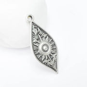 Capture the essence of nature with this exquisite antique silver plated leaf pendant. Featuring a beautiful sunburst design at its center and delicate floral patterns, this charm is perfect for crafting stunning necklaces, bracelets, or earrings. Made from high-quality materials with an antique finish, this pendant is ideal for DIY enthusiasts and jewelry makers looking to add a unique touch to their creations. Elevate your designs with this artistic and elegant component that embodies a bohemian spirit.