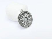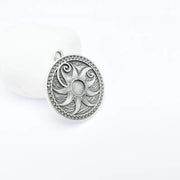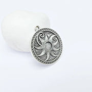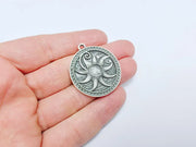 This antique silver plated pendant features a stunning sunburst design surrounded by an intricate, ornate border, bringing a touch of celestial or nautical mystique to any jewelry piece. Ideal for boho, mystical, or astrology-inspired creations, this pendant serves as a striking focal point for necklaces, bracelets, or even statement earrings. Crafted with attention to detail, this high-quality charm adds both beauty and durability to your handmade collection, capturing the essence of the sun's radiant energy in a timeless, vintage style.