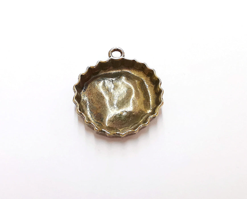 2 Crown Cap Charms Blank Bezel Resin Bezel Mosaic Mountings Antique Bronze Plated Charms (30x27mm) (22 mm Bezel Inner Size) G21347