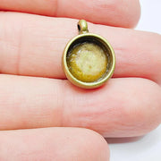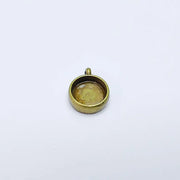 Round frame blank settings antique bronze plated pendant are made of nickel free and lead free zinc alloy metal. Inner diameter : 12 mm, Size : 19x15 mm.