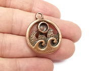 Sea, Wavy Round frame blank settings antique copper plated pendant are made of nickel free and lead free zinc alloy metal. Inner diameter : 6 mm, Size : 31x26 mm.