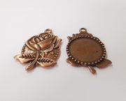 2 Rose frame pendant blank Antique copper plated pendant (53x36mm) (30mm Blank Size) G24176