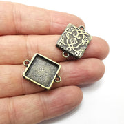 Square Pendant Blanks, Resin Bezel Bases, Mosaic Mountings, Dry flower Frame, Polymer Clay base, Antique Bronze Plated (15mm) G34581