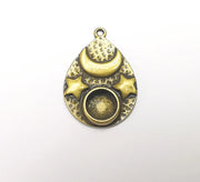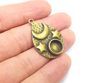 Moon and Star Pendant Bezel, Resin Blank, inlay Mounting, Mosaic Frame Cabochon Base Dry Flower Setting, Antique Bronze Plated (10mm) G28639