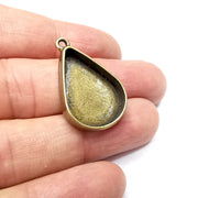 2 Drop Pendant Blanks, Resin Bezel Bases, Mosaic Mountings, Dry flower Frame, Polymer Clay base, Antique Bronze Plated (25x18mm) G34542