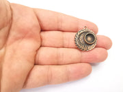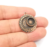 Fern Leaf Feather Charms Disc Copper Blank Bezel Pendant Antique Copper Plated (10mm Blank) G28158