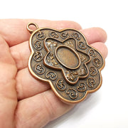 Flower pendant, settings antique copper plated pendant are made of nickel free and lead free zinc alloy metal. Inner diameter : 18x13 mm, Size : 68x53 mm.