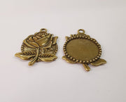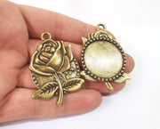2 Rose frame pendant blank Antique bronze plated pendant (53x36mm) (30mm Blank Size) G24147
