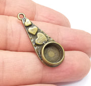 Heart Charms Pendant Bezels, Resin Blank, inlay Mountings, Mosaic Frame, Cabochon Bases, Flower Settings,Antique Bronze Plated (10mm) G29232