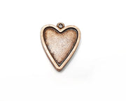 2 Heart Pendant Bezels, Resin Blank, inlay Mountings, Mosaic Frame, Cabochon Bases, Dry Flower Settings, Antique Copper Plated (21x17mm) G33261