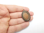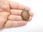 Oval frame blank settings antique copper plated pendant are made of nickel free and lead free zinc alloy metal. Inner diameter : 25x18 mm, Size : 41x28 mm.