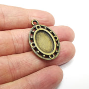 Oval frame blank pendant, connector settings antique bronze plated pendant are made of nickel free and lead free zinc alloy metal. Inner diameter : 18x13 mm, Size : 34x23 mm.