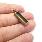 2 Rectangle Pendant Blanks, Resin Bezel Bases, Mosaic Mountings, Dry flower Frame, Polymer Clay base, Antique Bronze Plated (20x5mm) G34383