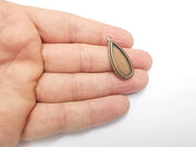 2 Teardrop Charm Bezel, Resin Blank, inlay Mounting, Mosaic Pendant Frame, Cabochon Base,Dry Flower Setting, Antique Copper (25x10mm) G29459