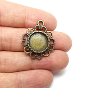 Flower Bronze charms pendant bezels are made of antique bronze plated nickel free and lead free zamac..