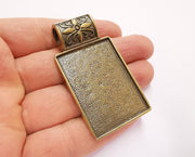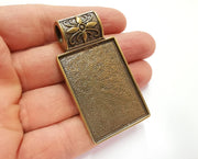 Flower Pendant Blank Bezel Resin Bezel Mosaic Mountings Antique Bronze Plated Pendant (62x34mm) (43x31 mm Bezel Inner Size) G23942