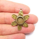 Bronze flower charms pendant bezels are made of antique bronze plated nickel free and lead free zamac..