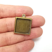 Square Pendant Blanks, Resin Bezel Bases, Mosaic Mountings, Dry flower Frame, Polymer Clay base, Antique Bronze Plated (20mm) G36119