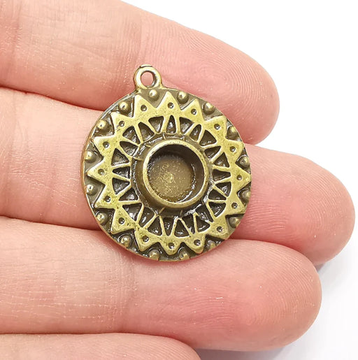 Unique Ethnic Tribal Pendant Bezels are made of antique bronze plated nickel free and lead free zinc alloy metal. Inner diameter : 8 mm, Size : 31x...
