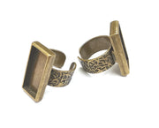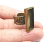 Rectangle Antique Bronze Ring Blank Setting, Cabochon Mounting, Adjustable Resin Ring Base Bezel, Inlay Ring Mosaic Ring Bezel (25x10mm) G28825