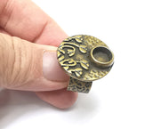 Flower Ring Blank Setting, Cabochon Mounting, Adjustable Resin Ring Base Bezels, Antique Bronze Inlay Ring Mosaic Ring Bezel (8mm) G29775