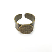 Hammered Ring Round Setting Resin Ring Blank Cabochon Mounting Adjustable Base Bezel Antique Bronze Plated Brass (16mm) G34486