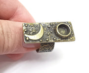 Sky Crescent Moon Ring Blank Setting, Cabochon Mounting, Adjustable Resin Ring Base, Antique Bronze Inlay Mosaic Ring Bezel (8mm) G29658