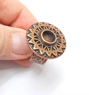 Copper Ring Setting Blank Cabochon Mounting Adjustable Resin Base Bezel Mosaic, Antique Copper Plated Brass (8mm) G33346
