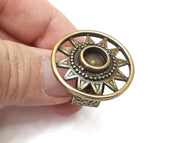Sun Ring Setting Blank Cabochon Mounting Adjustable Resin Base Bezel Mosaic, Antique Bronze Plated Brass (8mm) G33359