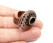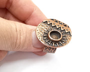 Sun Ethnic Ring Setting Blank Cabochon Mounting Adjustable Resin Base Bezel Mosaic, Antique Copper Plated Brass (8mm) G33319