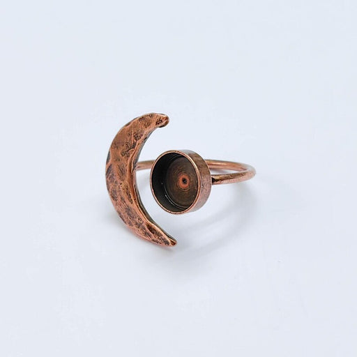 Crescent Moon Adjustable Ring, 8mm Bezel Setting, Antique Copper Ring Base, G37644
