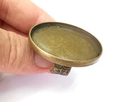 Oval Ring, Branch Ring Blank Setting, Cabochon Mounting, Adjustable Resin Base Bezels, Antique Bronze Plated (40x30mm) G28697