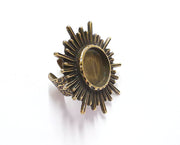 Sun Ring Blank Setting Textured Base Bezel inlay Ring Backs Glass Cabochon Mounting Adjustable Antique Copper Plated (16mm bezel ) G20531
